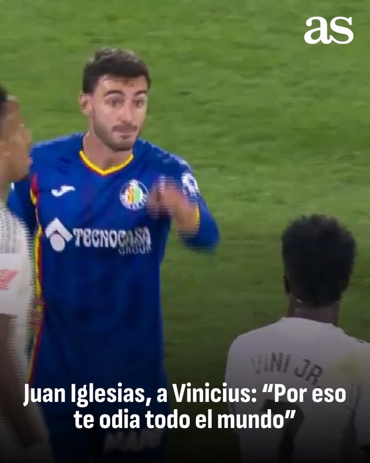 西甲第9轮,九人赫塔费主场作战 0-1不敌皇家马德里,在赛事 第83分钟,赫塔费球员胡安·伊格莱西亚斯和皇击鞠 员维尼修斯发生口角。