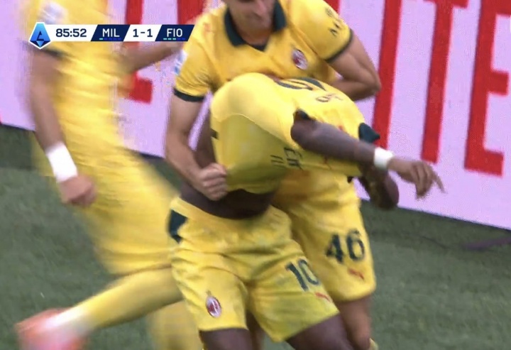 10月20日讯 米兰vs佛罗伦萨,第86分钟莱奥十二码球破门助米兰反超,足球直播无插件免费在线观看之后他想脱衣庆祝,被加比亚按住了!