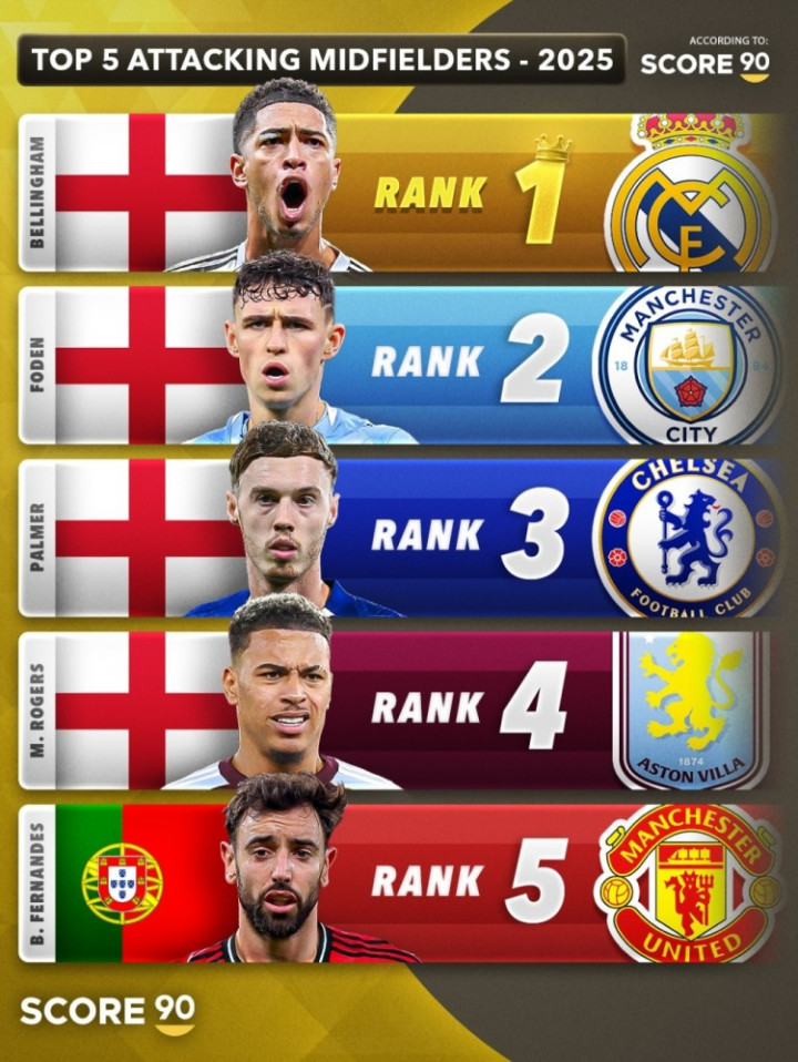 以下是2025年最佳攻击 型中场球员前五榜单: