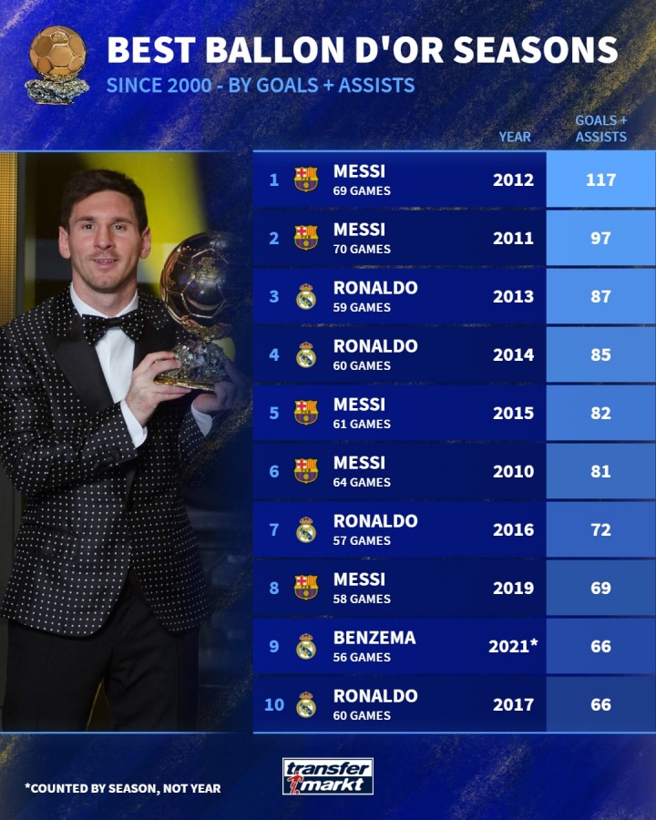 9月24日讯 2025年金球奖评选结果出炉,巴黎圣日耳曼翼锋登贝莱夺魁。曾几何时,梅西和C罗主宰了金球奖的评选,两人之间的角逐 成为足坛令人津津乐道的话题。德国转会市场盘点了2000年以来金球奖得主直接加入 得分 情况,梅西2012年69场117球居首。