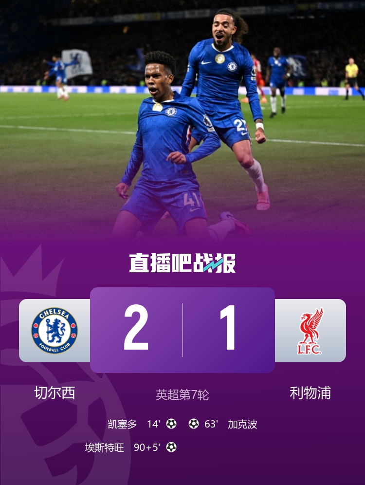 切尔西2-1致胜球 送利物浦三连败 埃斯特旺补时致胜球 凯塞多世界波