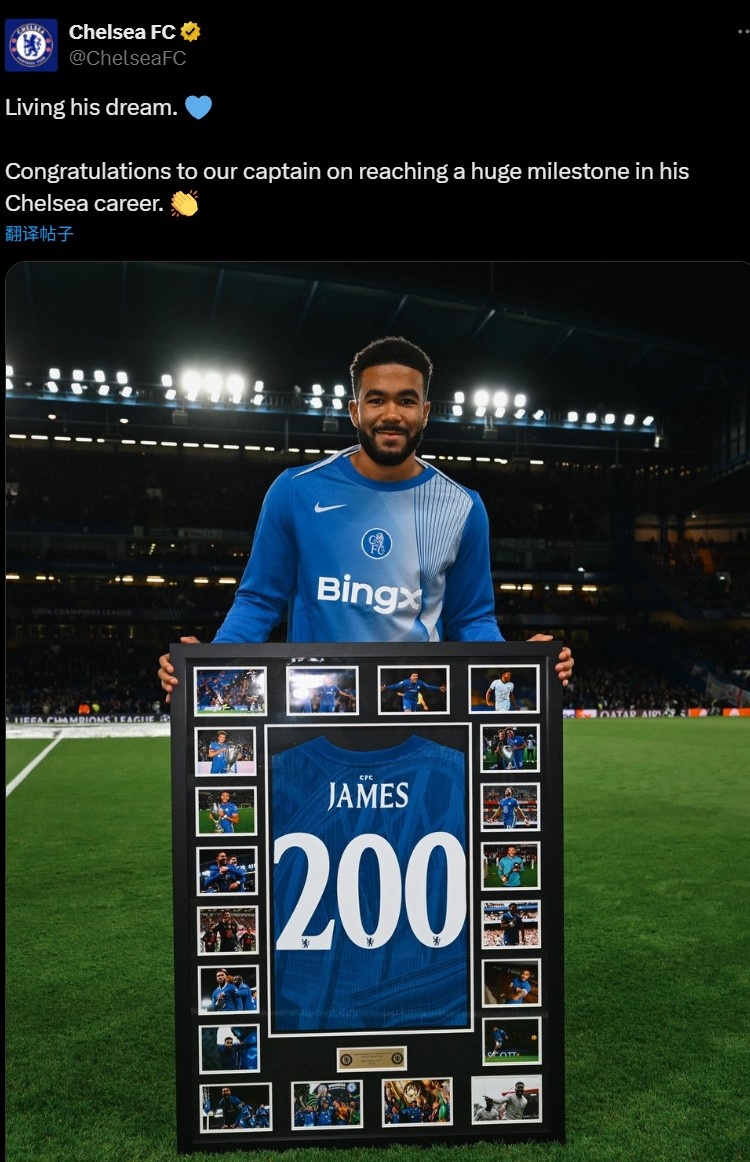 切尔西官推也对此表示:“实现着他的理想 。💙祝贺我们的领队 达成了在切尔西职业生涯的重要里程碑英超联赛免费视频直播。 👏”
