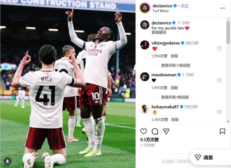 赖斯的姨妈贝芙近日去世即时投注即时投注体育赛事,阿森纳中场球员用得分 献给了自己深爱的人。